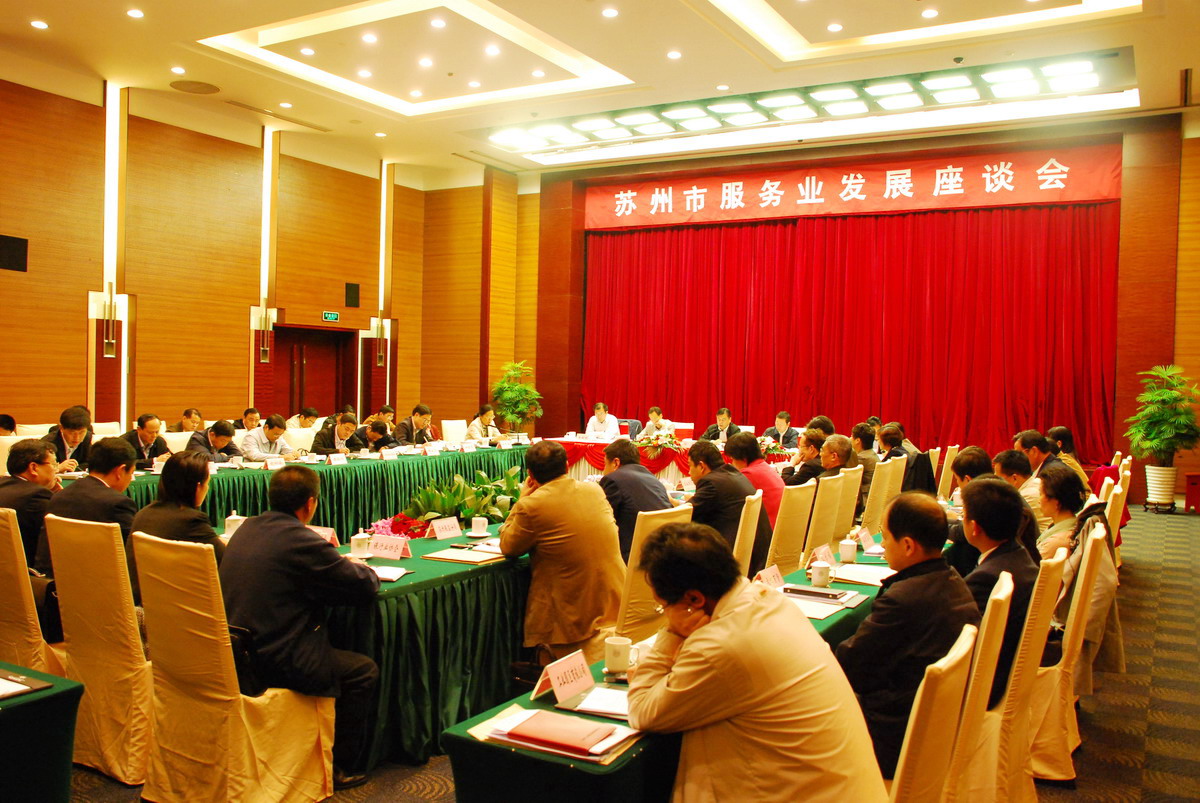 11月11日下午,蘇州市服務(wù)業(yè)發(fā)展座談會(huì )在蘇州市會(huì )議中心多功能廳召開(kāi)。市委副書(shū)記、市長(cháng)閻立及蘇州市各區、各局、委、辦主要負責人約70人出席會(huì )議,會(huì )議由市委常委、副市長(cháng)周偉強主持。市發(fā)改委、貿易局、旅游局、銀監分局、保險行業(yè)協(xié)會(huì )、擔保商會(huì )、百貨同業(yè)公會(huì )、東方絲綢市場(chǎng)、蘇州青旅以及蘇州工業(yè)園區圓融集團做會(huì )議交流發(fā)言。