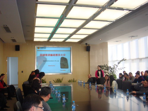 2010年1月8日,蘇州圓融發(fā)展集團有限公司召開(kāi)廉政教育大會(huì ),集團管理層、中層以上人員,集團招商部、開(kāi)發(fā)部、合約部、財務(wù)部、項目部及下屬公司各部門(mén)負責人以及集團全體黨員、集團紀檢小組全體成員共計70余人參加了會(huì )議。