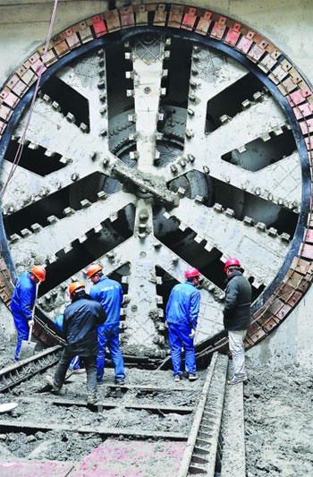 記者在現場(chǎng)看到,盾構機的機身主體目前仍在隧道內,工人們正在緊張地進(jìn)行最后施工。