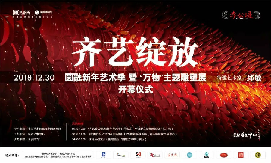 “齊藝綻放”圓融新年藝術(shù)季的成功舉辦,為廣大市民帶來(lái)了一場(chǎng)文化饕餮大餐,在2019新年到來(lái)之際,開(kāi)啟了華美新篇章!希望本次藝術(shù)季能夠通過(guò)作品的展示、專(zhuān)家的分享、思維的碰撞、觀(guān)點(diǎn)的交鋒,為廣大朋友帶來(lái)最前沿的雕塑藝術(shù)享受。