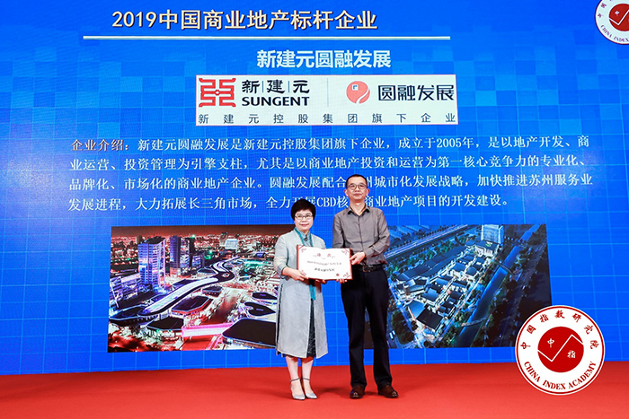 2019年7月16日,由中指研究院、中國房地產(chǎn)指數系統主辦,中指控股承辦的“2019中國商業(yè)地產(chǎn)指數發(fā)布會(huì )暨第二屆中國商業(yè)地產(chǎn)發(fā)展高峰論壇”在北京舉行。新建元圓融發(fā)展榮膺“2019中國商業(yè)地產(chǎn)標桿企業(yè)”,圓融發(fā)展開(kāi)發(fā)建設的“南通圓融廣場(chǎng)”成功獲評“2019中國商業(yè)地產(chǎn)標桿項目”。圓融發(fā)展南通公司總經(jīng)理卞文山參會(huì )并領(lǐng)獎。