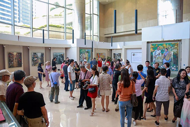 著(zhù)名藝術(shù)家楊明義、著(zhù)名畫(huà)家余克危、袁維菁、沈民義、勞思、周偉明、吳鴻章、文聯(lián)老領(lǐng)導王祖慶、陳建行、圓融商管副總經(jīng)理、圓融藝術(shù)中心創(chuàng )始人薛文崗、圓融星座項目總經(jīng)理何志崗等領(lǐng)導嘉賓出席了本次開(kāi)幕式。