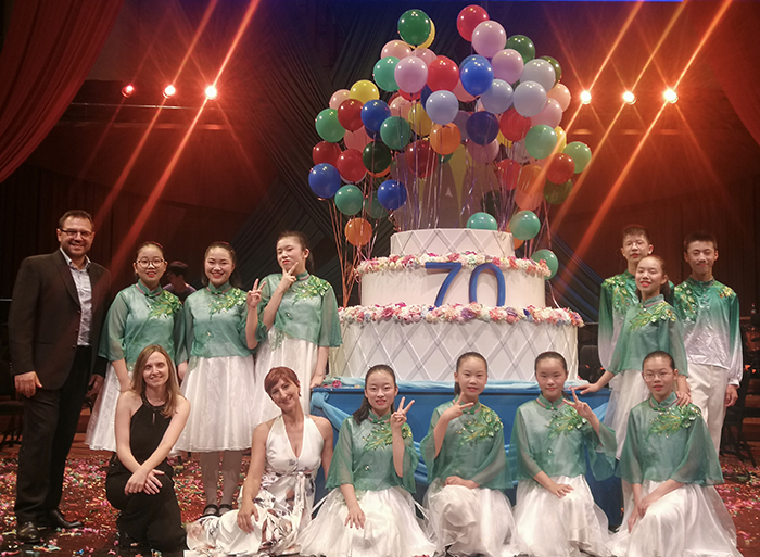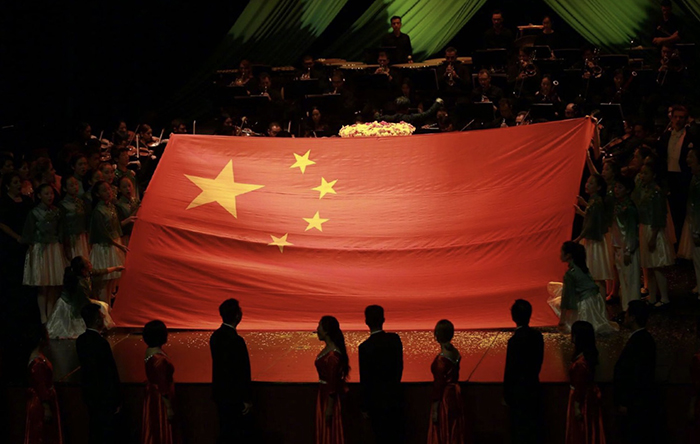 為了慶祝新中國成立70周年,整以美聲唱法、交響伴奏為主,融入評彈、京劇、黃梅戲等傳統藝術(shù)的表演形式,選取70年來(lái)經(jīng)典傳唱、鼓舞人心的音樂(lè )作品,為觀(guān)眾呈現一臺高水準、高品質(zhì)、中西合璧、跨界融合的精彩演出,展現新中國在中國共產(chǎn)黨領(lǐng)導下,戰勝艱難險阻,譜寫(xiě)壯麗詩(shī)篇的宏大主題。更令人感動(dòng)的是尾聲環(huán)節,藝術(shù)團孩子們清唱著(zhù)《祝你生日快樂(lè )》,手托五星紅旗莊重的走上舞臺,并將國旗展開(kāi)在舞臺上,接著(zhù)《我和我的祖國》響起,全場(chǎng)歌手合唱,這一刻大家都熱血沸騰、激情昂揚,孩子們眼中閃爍著(zhù)愛(ài)國的青春熱情和堅定力量。