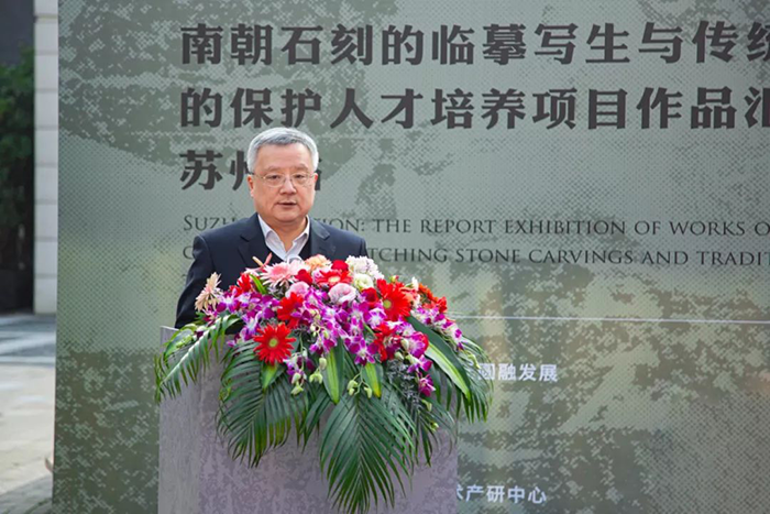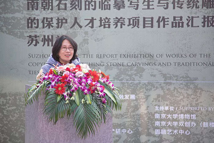 中國美術(shù)家協(xié)會(huì )藝委會(huì )委員、江蘇省雕塑家協(xié)會(huì )副主席、蘇州工藝美院、蘇州大學(xué)教授、博士研究生導師廖軍、南京大學(xué)圖書(shū)館副館長(cháng)、博物館副館長(cháng) 史梅、蘇州新建元控股集團黨委副書(shū)記、總裁亢越對此次文化盛宴進(jìn)行精彩致辭。