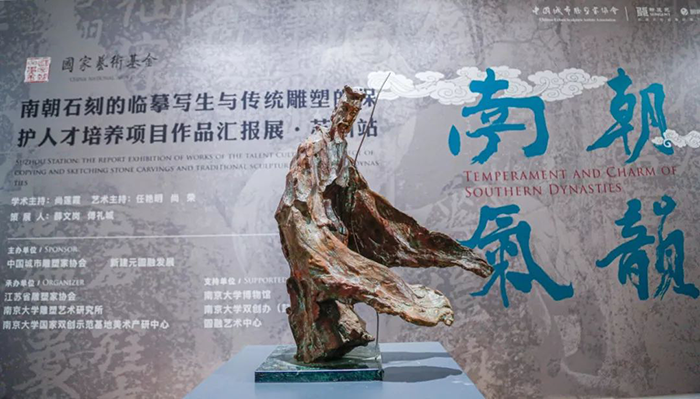 此次展覽中,南京大學(xué)雕塑藝術(shù)研究所還集中展出了《南朝氣韻——南朝石刻的臨摹寫(xiě)生與傳統雕塑的保護人才培養》國家藝術(shù)基金項目研修班學(xué)員們的作品。四個(gè)月來(lái),來(lái)自全國各地的學(xué)員們深入田野尋訪(fǎng)南朝石刻,用現代雕塑語(yǔ)言重新詮釋南朝石刻。