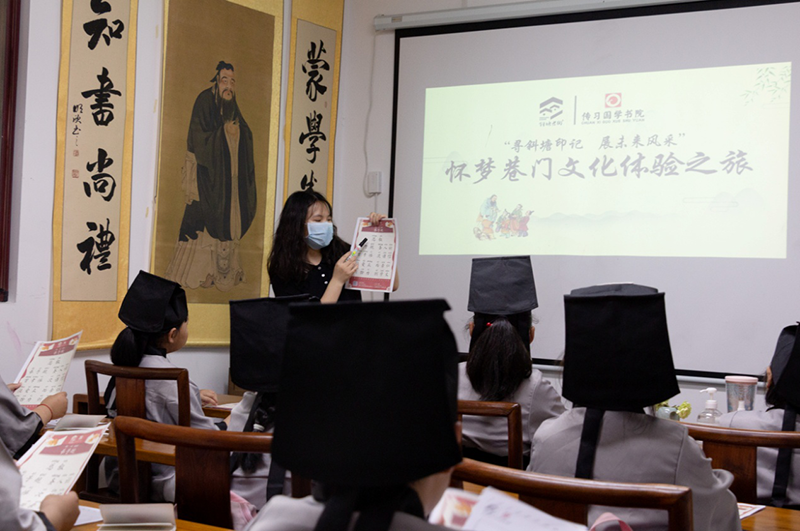 短暫的午休后,孩子們來(lái)到“傳習國學(xué)”,穿上了漢服,上了一堂簡(jiǎn)短的國學(xué)課,在領(lǐng)略國學(xué)文化的同時(shí),也增強了孩子們的愛(ài)國情懷。孩子們還在“沁霖館”學(xué)習了彩繩編織,了解了中醫文化。