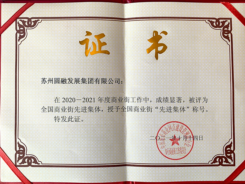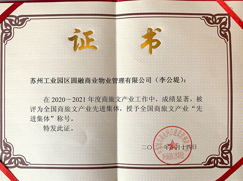 在本屆西寧年會(huì )上,中國商街委還向 2020-2021 工作年度在商業(yè)街行業(yè)與商旅文產(chǎn)業(yè)工作中,做出突出貢獻的“先進(jìn)集體”和“先進(jìn)個(gè)人”進(jìn)行表彰。蘇州圓融發(fā)展集團有限公司榮獲全國商業(yè)街“先進(jìn)集體”稱(chēng)號,蘇州圓融商管公司(李公堤)榮獲全國商旅文產(chǎn)業(yè)“先進(jìn)集體”稱(chēng)號。