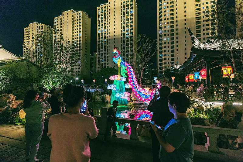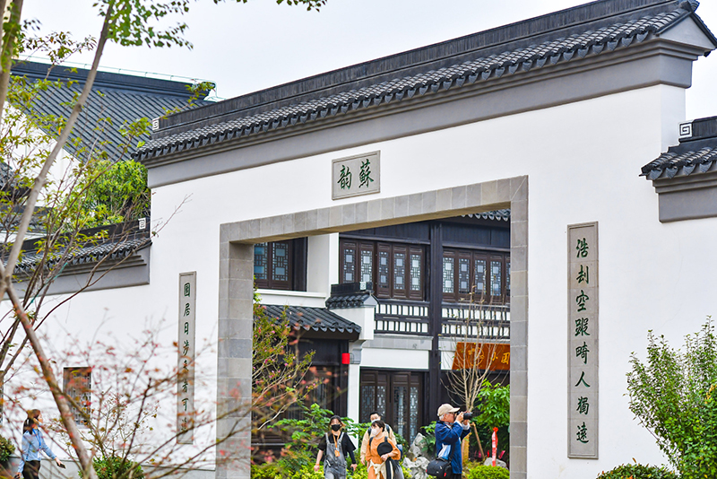 它是一處商業(yè)街區,匯聚了來(lái)自蘇州的書(shū)香府邸旗艦店、宿遷本地特色店“金輝盛筵”、主打生猛海鮮的“漁舟村”、美味地道的蘇幫菜館“小園樓”等特色商戶(hù);它是一處園林景區,有“皺瘦漏透”的太湖石翼云峰、寓意長(cháng)壽的涵碧軒山花、仿若仙境的蓬萊庭院以及粉墻黛瓦、飛檐翹角、壘石堆山、小橋流水等;它是一處文化社區,有老字號中醫館雷允上、凝結蘇宿情誼的蘇宿工業(yè)園區城市展覽館、展示“百匠賦新”的蘇工蘇作館,匯集了蘇州最具代表性的燈彩、核雕、宋錦、明式家具、船點(diǎn)、蘇繡等手工藝作品。
