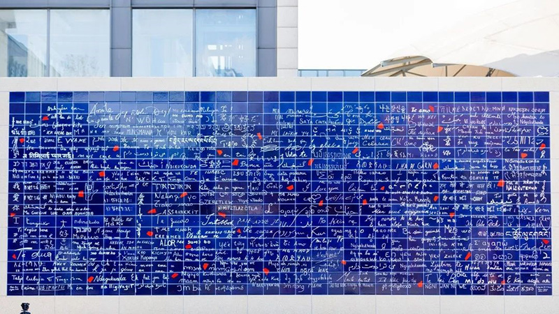 2022蘇州金雞湖蘇州金雞湖中法文化藝術(shù)周系列活動(dòng)于10月28日至11月7日在中國蘇州與法國巴黎同時(shí)舉辦。李公堤中法愛(ài)墻作為中法文化交流的藝術(shù)地標,是園區江南文化與國際潮流融合展現的窗口。朝北一面是世界知名藝術(shù)裝置《愛(ài)墻》(Le mur des je t’aime)亞洲唯一復制品,按照原型1:1復制。朝南一面是國際知名街畫(huà)藝術(shù)家、多次吉尼斯世界紀錄創(chuàng )造者齊興華的作品《龍鳳呈祥》,龍起九州生瑞氣,鳳隨云彩舞風(fēng)華,呈現出絢爛重彩的吉慶圖景。在李公堤,中法文化關(guān)于“愛(ài)”的不同語(yǔ)言,跨越時(shí)空交相輝映。