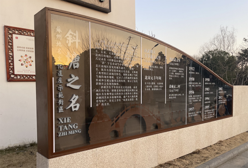圓融發(fā)展自2022年5月開(kāi)始啟動(dòng)“蘇州市地名文化遺產(chǎn)保護示范街區” 申報工作, 從“斜塘之名”“斜塘風(fēng)物”“斜塘風(fēng)情”“斜塘風(fēng)華”“斜塘堤橋”“斜塘尋古”“斜塘新篇”七個(gè)方面推動(dòng)街區申報成功落地,將歷史悠久的斜塘在地文化與多元創(chuàng )意相融合,織就文旅商融合“雙面繡”。