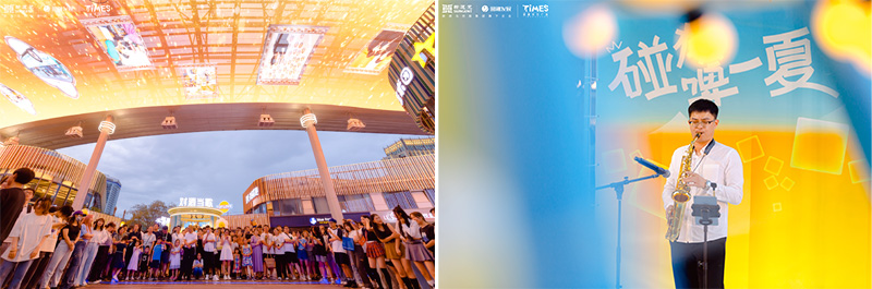在天幕市集現場(chǎng),消費者們可聆聽(tīng)到爵士、管弦樂(lè )、樂(lè )隊、民謠等150場(chǎng)次演出。知名爵士樂(lè )團磁樂(lè )隊帶你感受夏日優(yōu)雅,百人隨機舞蹈,隨機唱跳等,嗨翻現場(chǎng)!