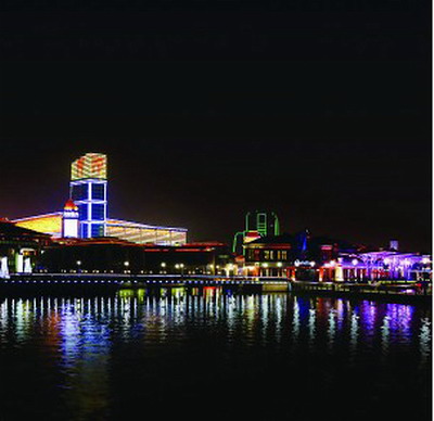 城市觀(guān)光區以湖濱大道、香樟園、城市廣場(chǎng)為主體,矗立于此的大型現代金屬雕塑“圓融”,出自新家坡著(zhù)名雕塑家孫宇立先生之手,是園區的標志性建筑。金雞湖西岸由一條湖濱大道貫穿始終,沿途設置了以樟樹(shù)為主題的綠色空間——香樟園。定期上演的音樂(lè )噴泉和水幕電影是目前華東地區規模最大的水景系統,水景以“水韻飛歌”為主題,結合激光、電影、音樂(lè )、焰火等元素,集中展示了金雞湖景區的時(shí)代風(fēng)采。