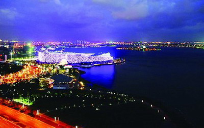 湖濱大道由美國易道公司進(jìn)行景觀(guān)設計,由北至南分別由香樟園、城市廣場(chǎng)、游艇碼頭等組合而成,長(cháng)約2公里,沿途視野開(kāi)闊,景色宜人,空氣清新,夜幕下的弧形燈光長(cháng)廊,更是增添了幾分浪漫情調。