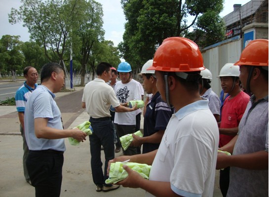 7月22日下午,圓融集團管理層領(lǐng)導沈玉林、唐登斌帶領(lǐng)集團相關(guān)部門(mén)負責人、工作人員赴集團各在建項目慰問(wèn)一線(xiàn)施工人員,為他們送去關(guān)懷與清涼。
