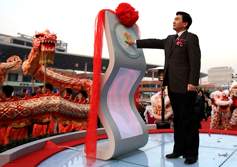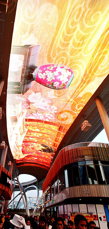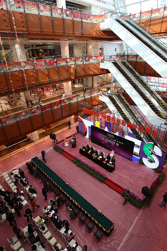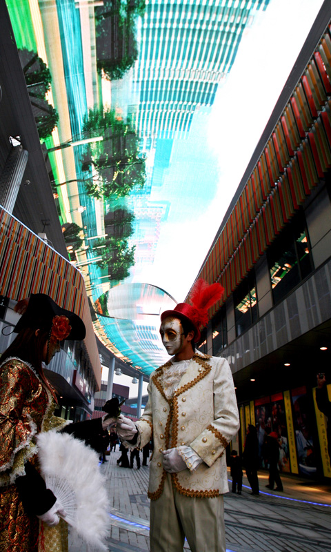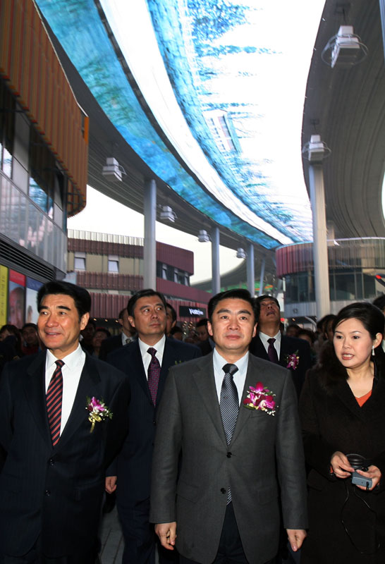 嘉賓們在參加了位于久光百貨內的開(kāi)業(yè)典禮后,又參觀(guān)了時(shí)代廣場(chǎng),并觀(guān)看天幕首映,廣場(chǎng)上熙熙攘攘,熱鬧非凡,行為藝術(shù)表演為商業(yè)文化增添了更為濃郁的時(shí)尚氛圍。