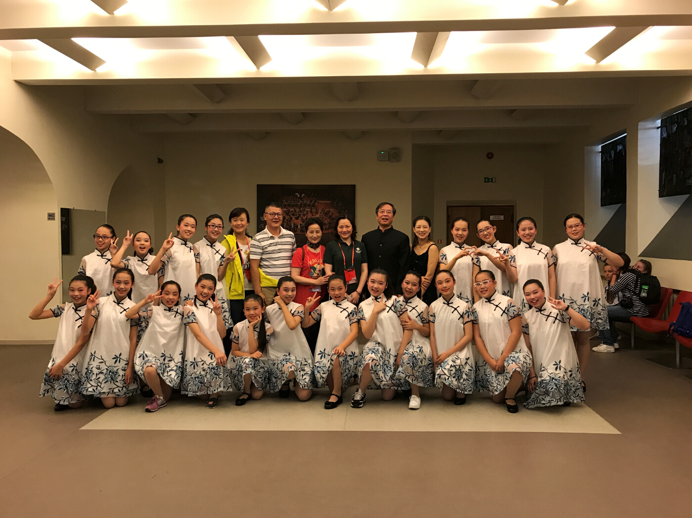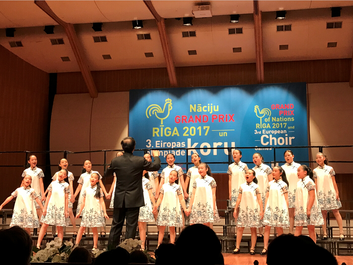 北京時(shí)間7月18日下午,在園區青少年活動(dòng)中心俞清主任的帶隊下,合唱團一行26名師生從上海浦東機場(chǎng)出發(fā),在經(jīng)歷飛機延誤,轉機無(wú)果等重重困難之下,經(jīng)過(guò)近60小時(shí)的輾轉,順利到達本次比賽的所在地——拉脫維亞里加市。經(jīng)過(guò)短暫休整之后,藝術(shù)團以良好的精神面貌出現在里加大公館比賽現場(chǎng)。