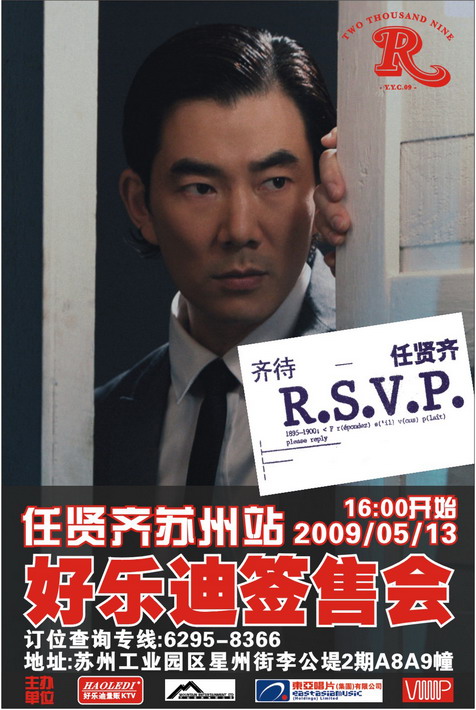 5月13日下午四點(diǎn)至六點(diǎn),亞洲天王任賢齊將在李公堤1912時(shí)尚街區的好樂(lè )迪與蘇州歌迷見(jiàn)面,并進(jìn)行新專(zhuān)輯《齊待R.S.V.P》的簽售活動(dòng),此次將是任賢齊在江蘇的獨家簽售會(huì )。
